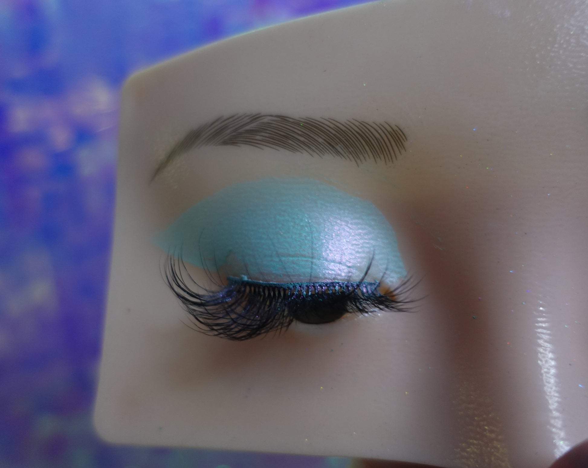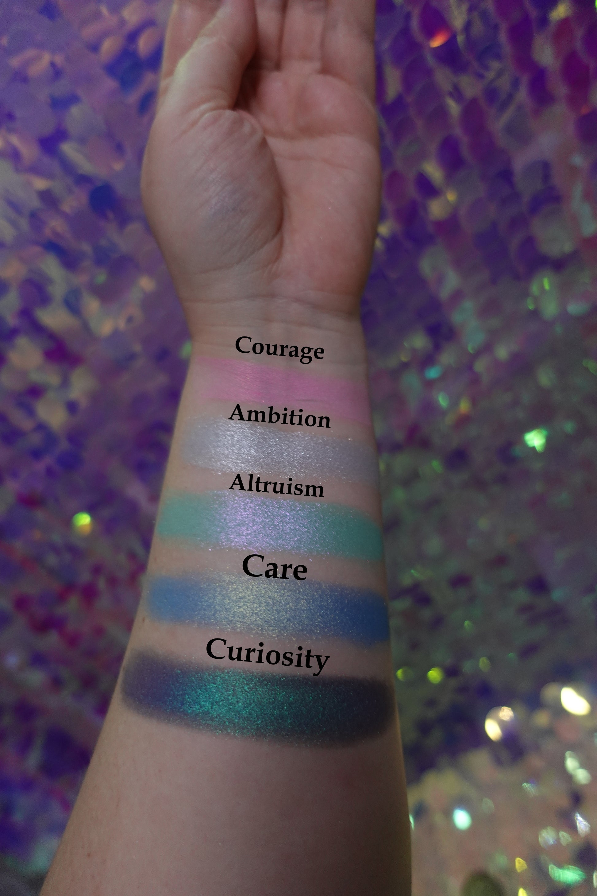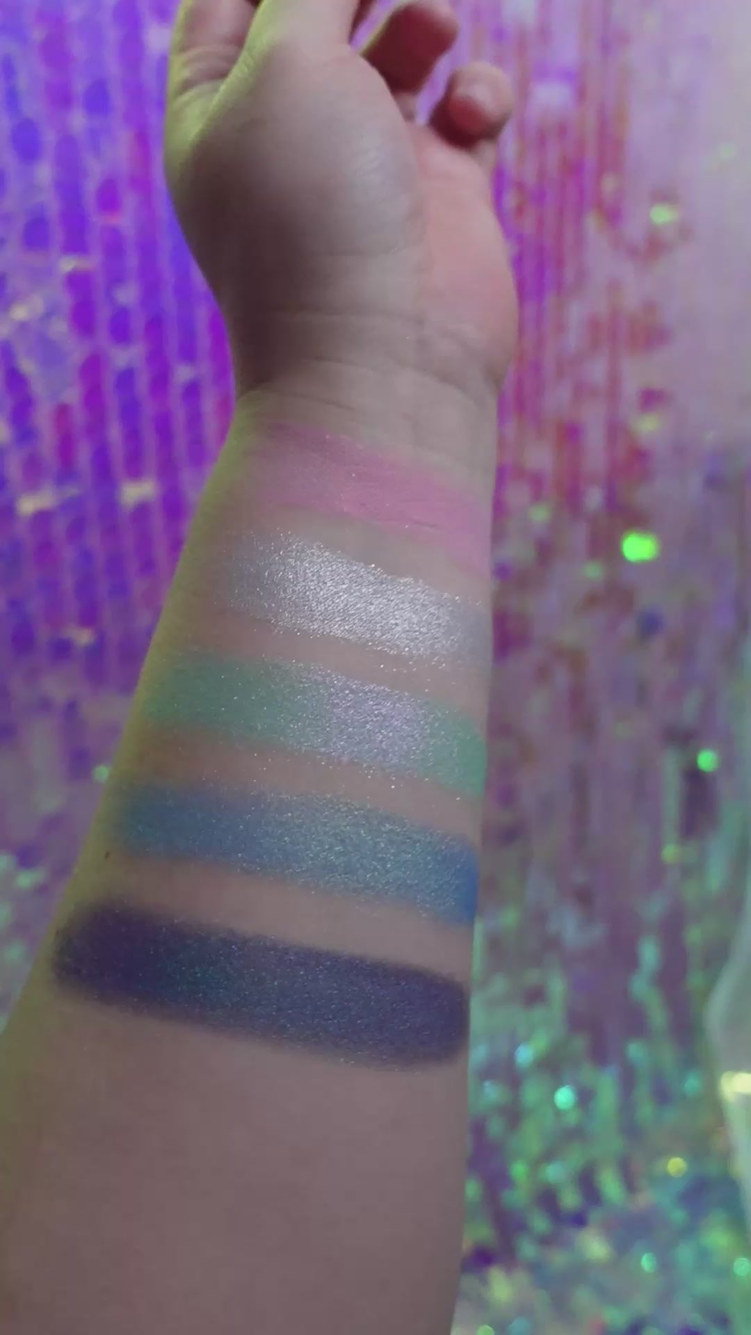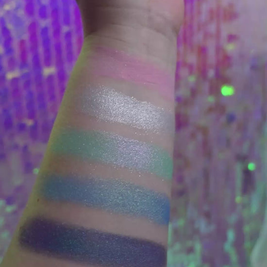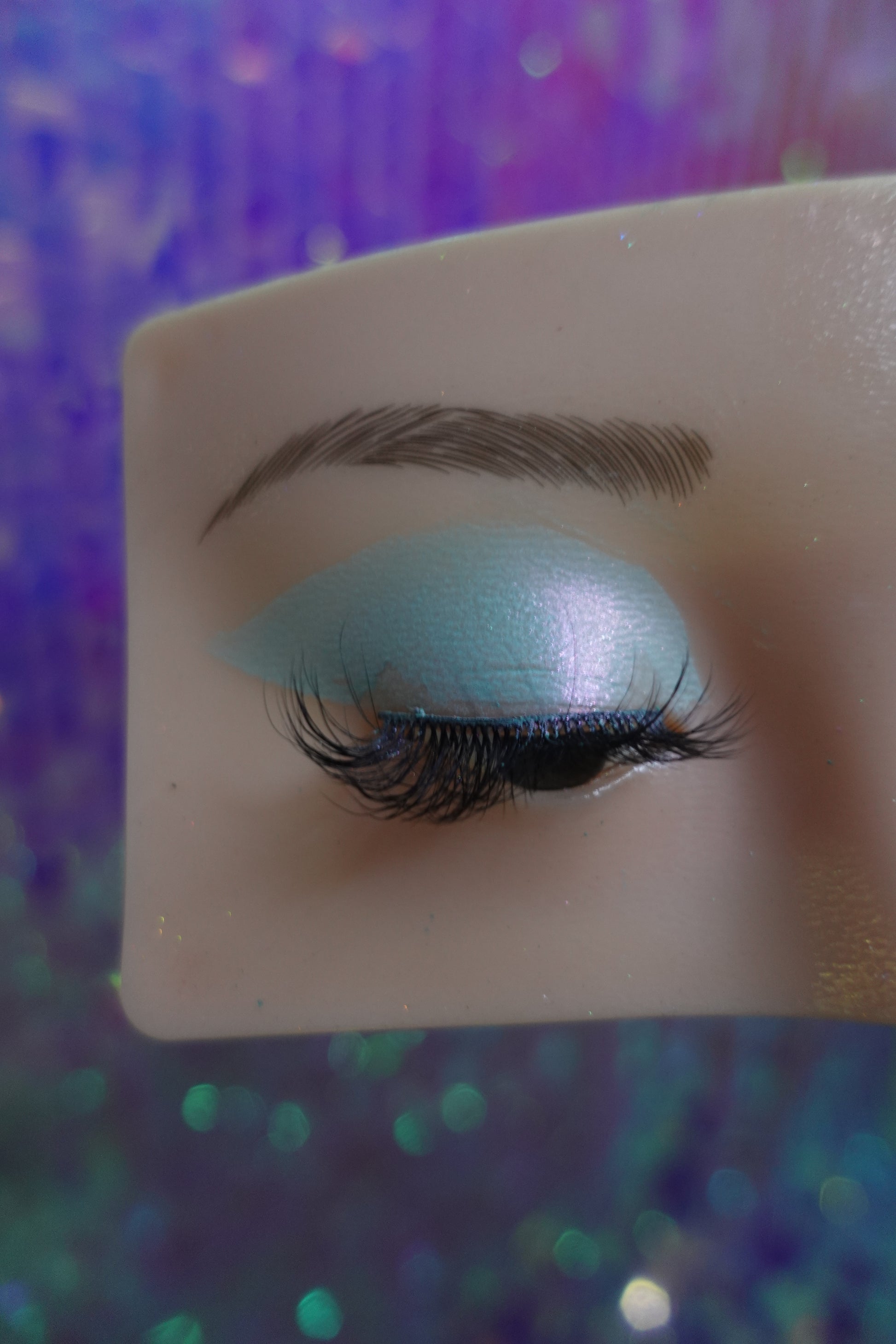 Ethereal multichrome eyeshadow shifts from light teal to soft pink leaving slight hint of blue
