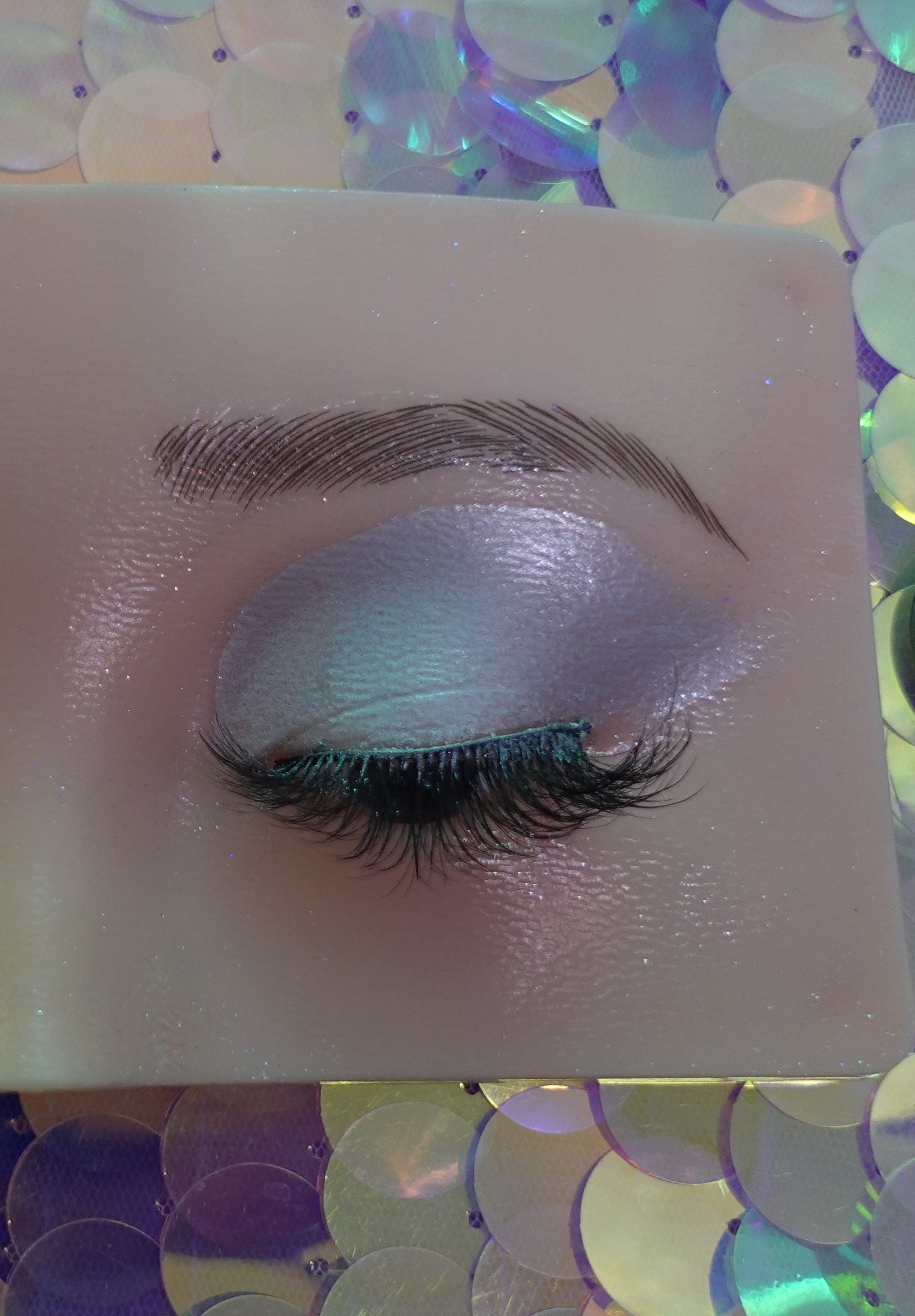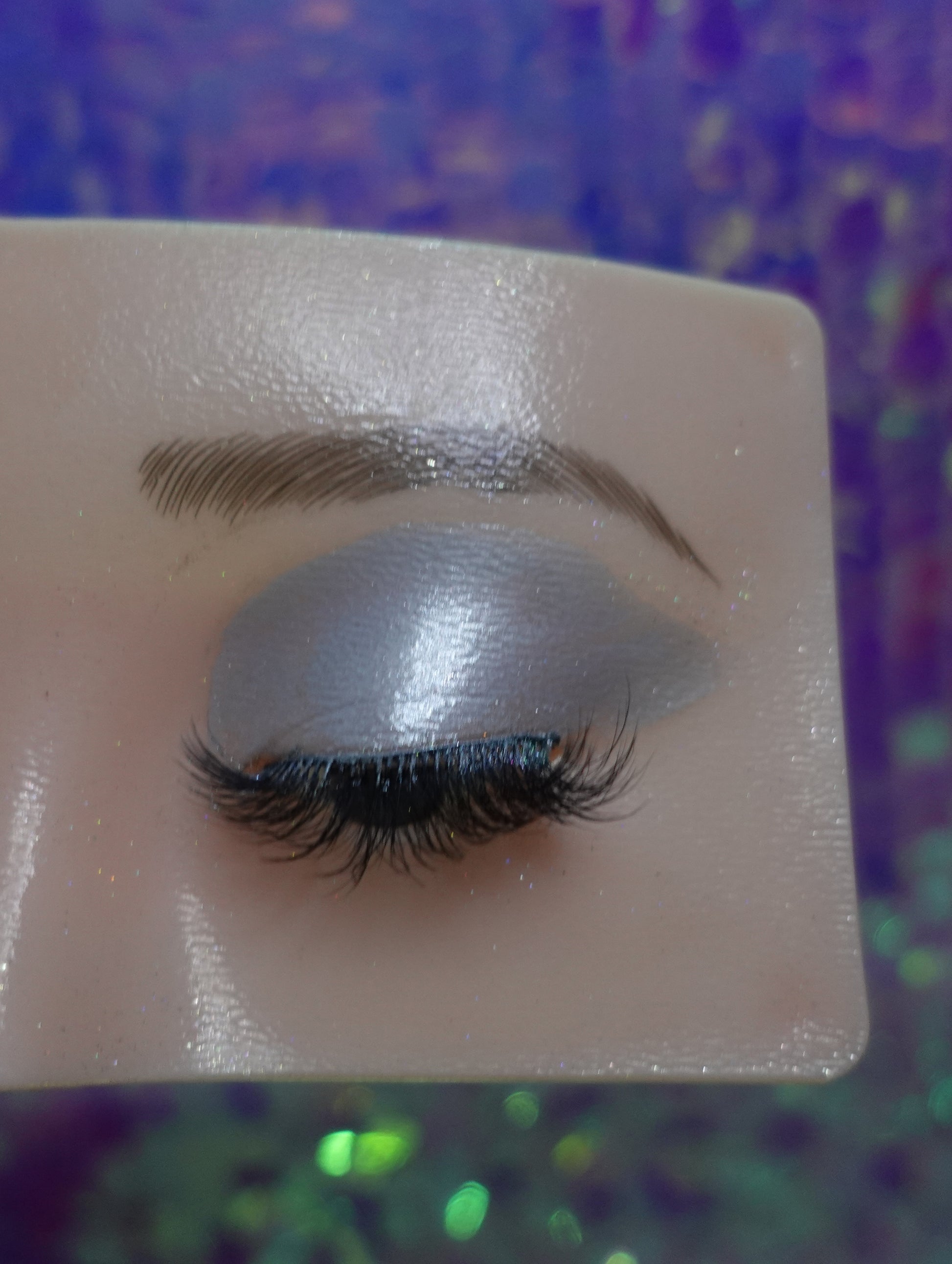 Dreamy icy silver eyeshadow with a subtle hint of soft lilac