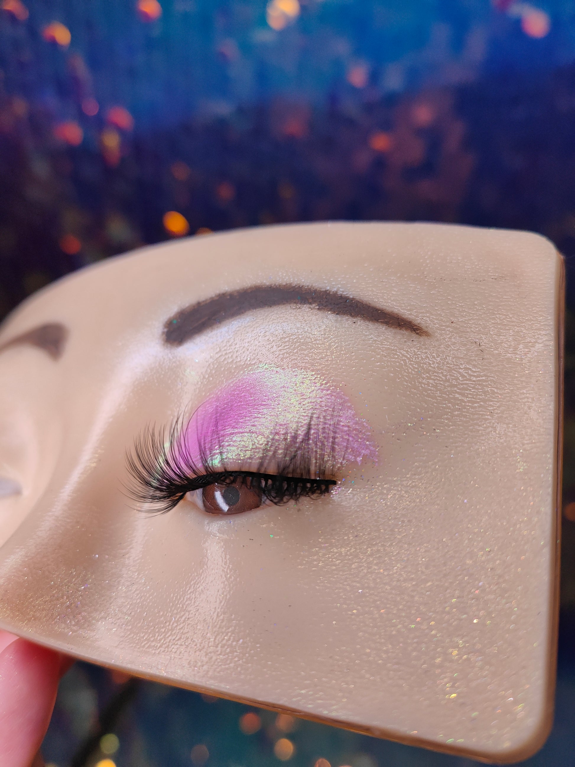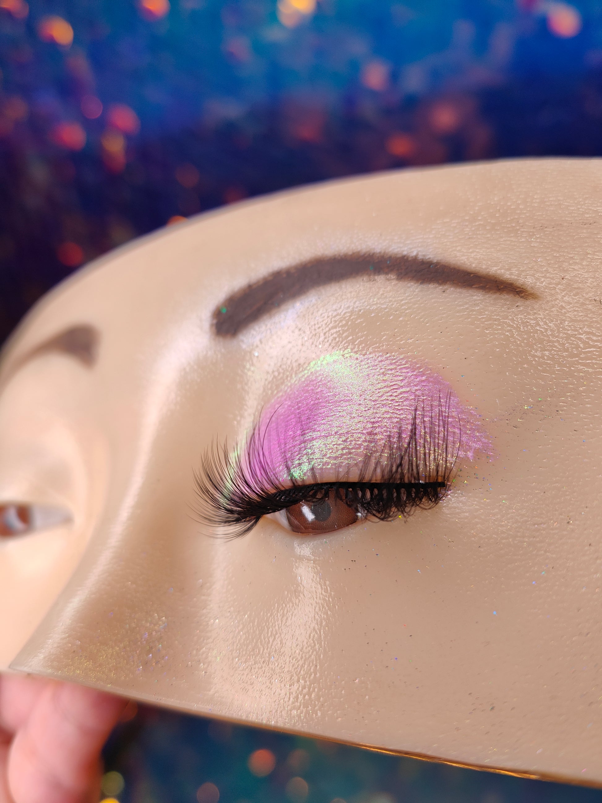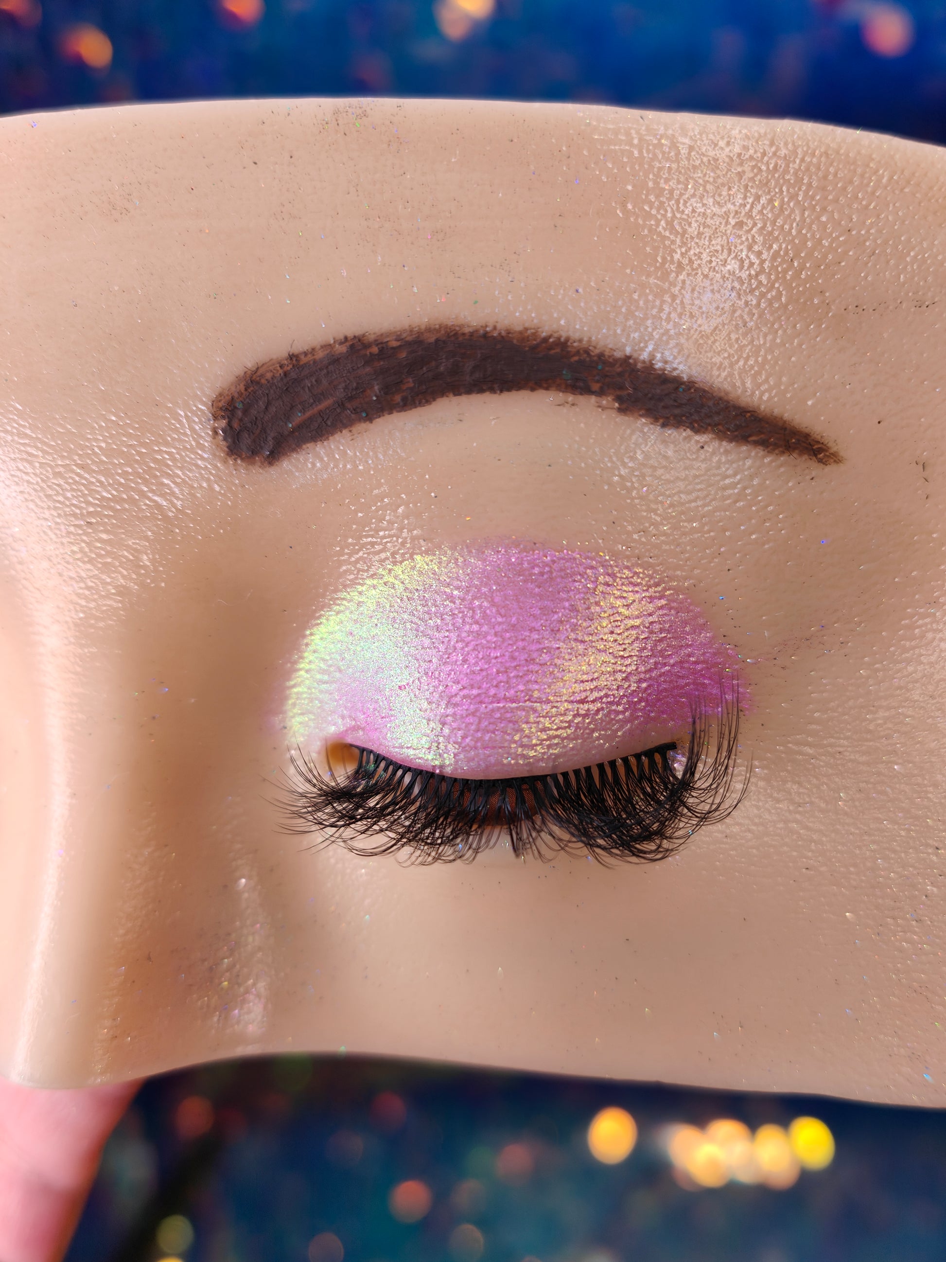 Dazzling chameleon goes full Barbie - it changes color from full pink to sparkly gold with a tiny hint of blue