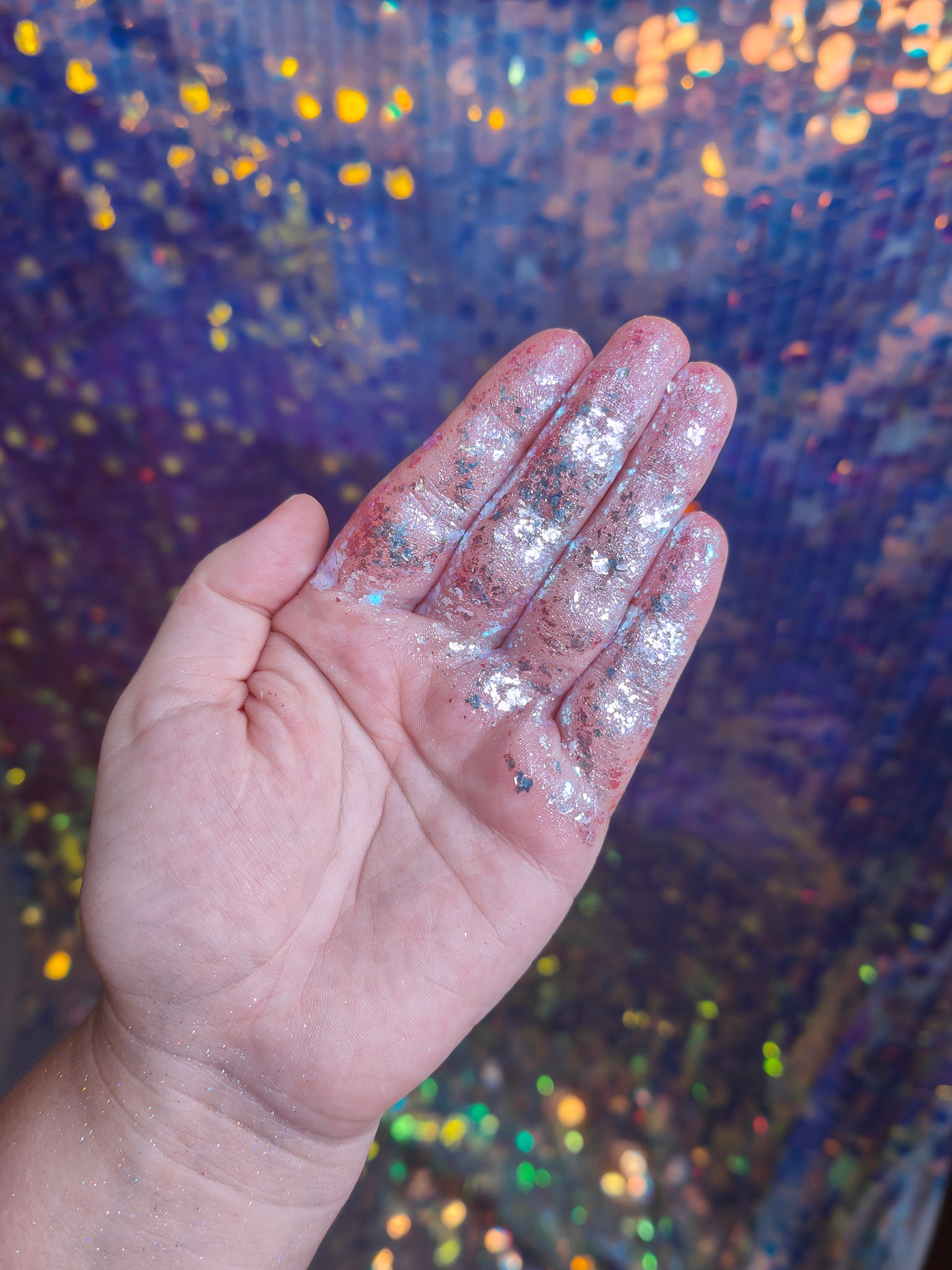 Amazing white chameleon face and body flakes gel changing color to slight red and light blue