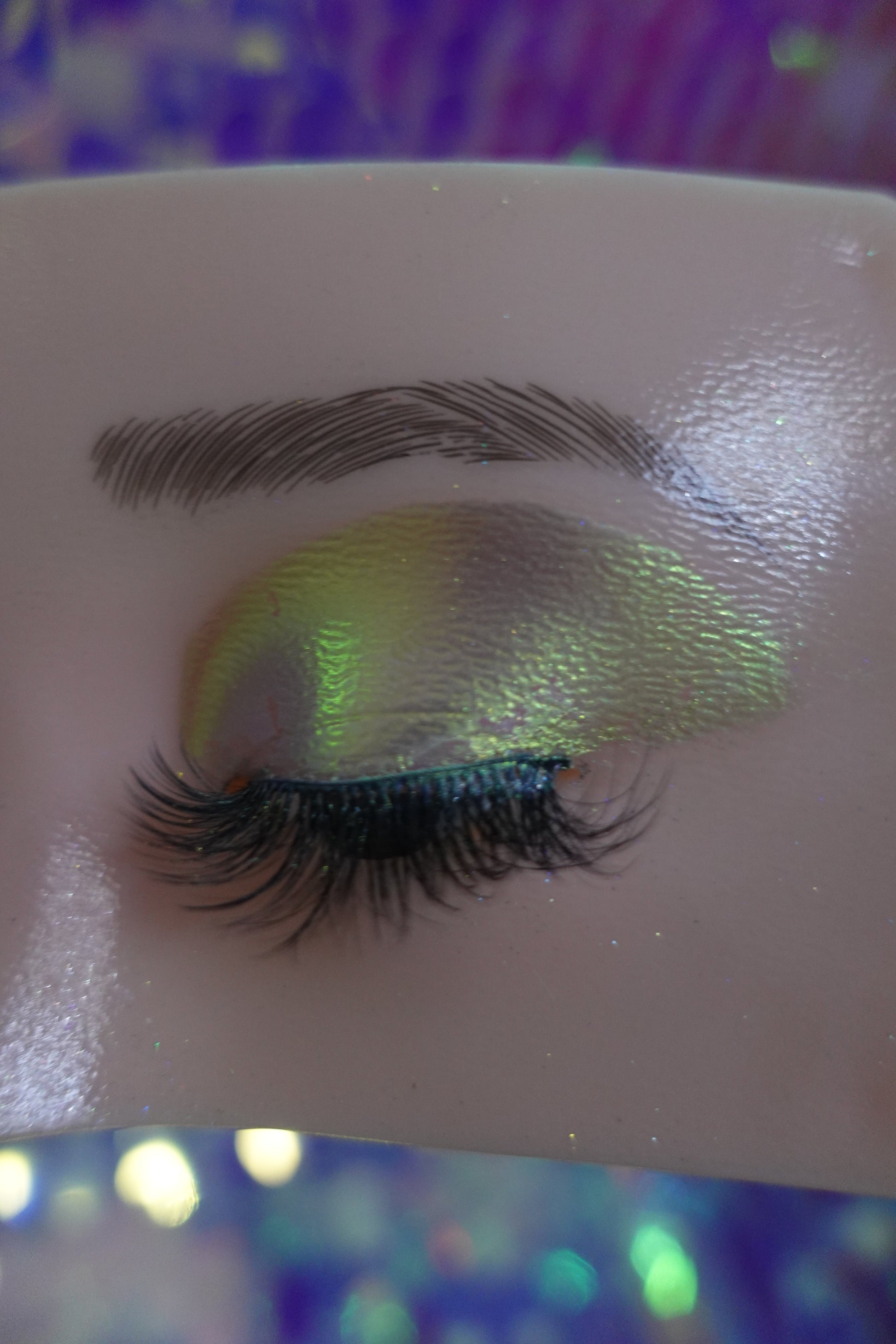 Radiant multichrome eyeshadow shifts from molten gold to glowing green with a touch of rich red-brown depth