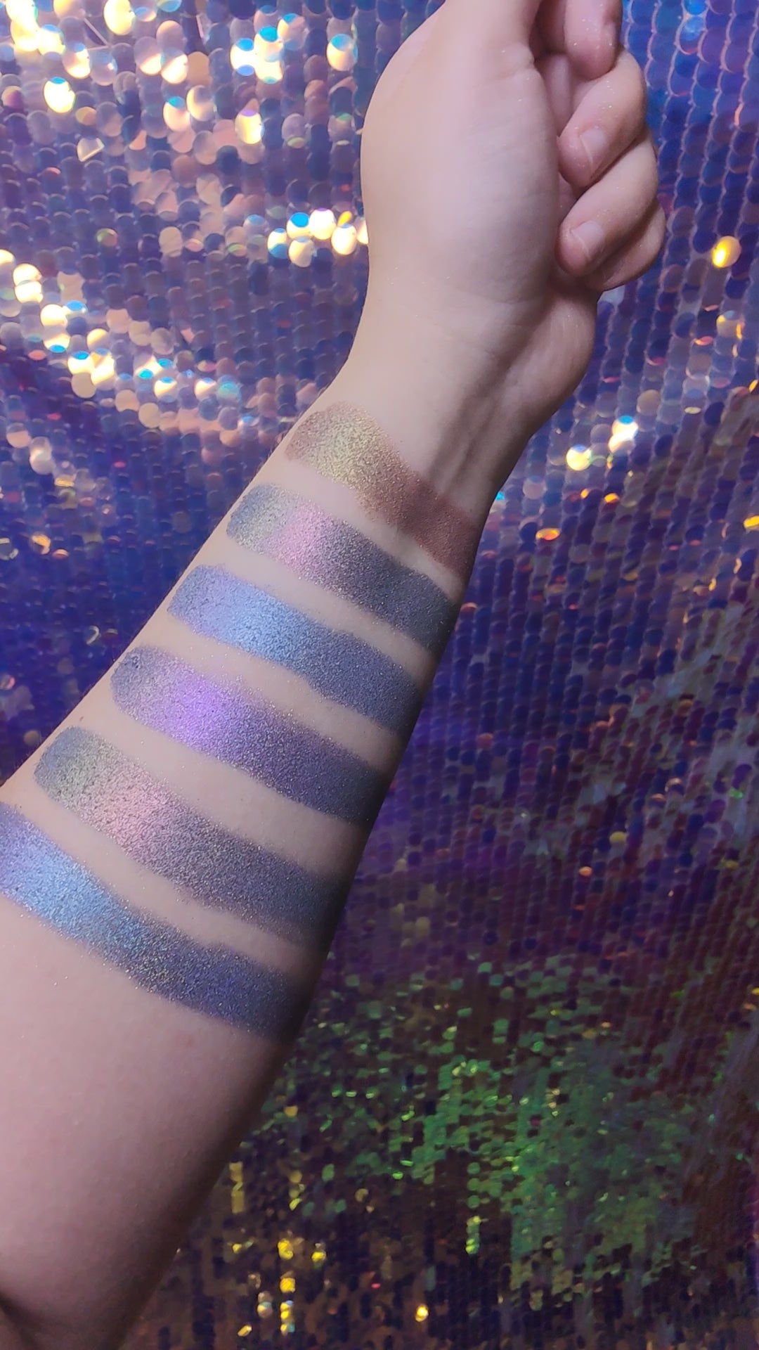 Wonderful bright violet holographic eyeshadow changing color to warm taupe with a hint of orange