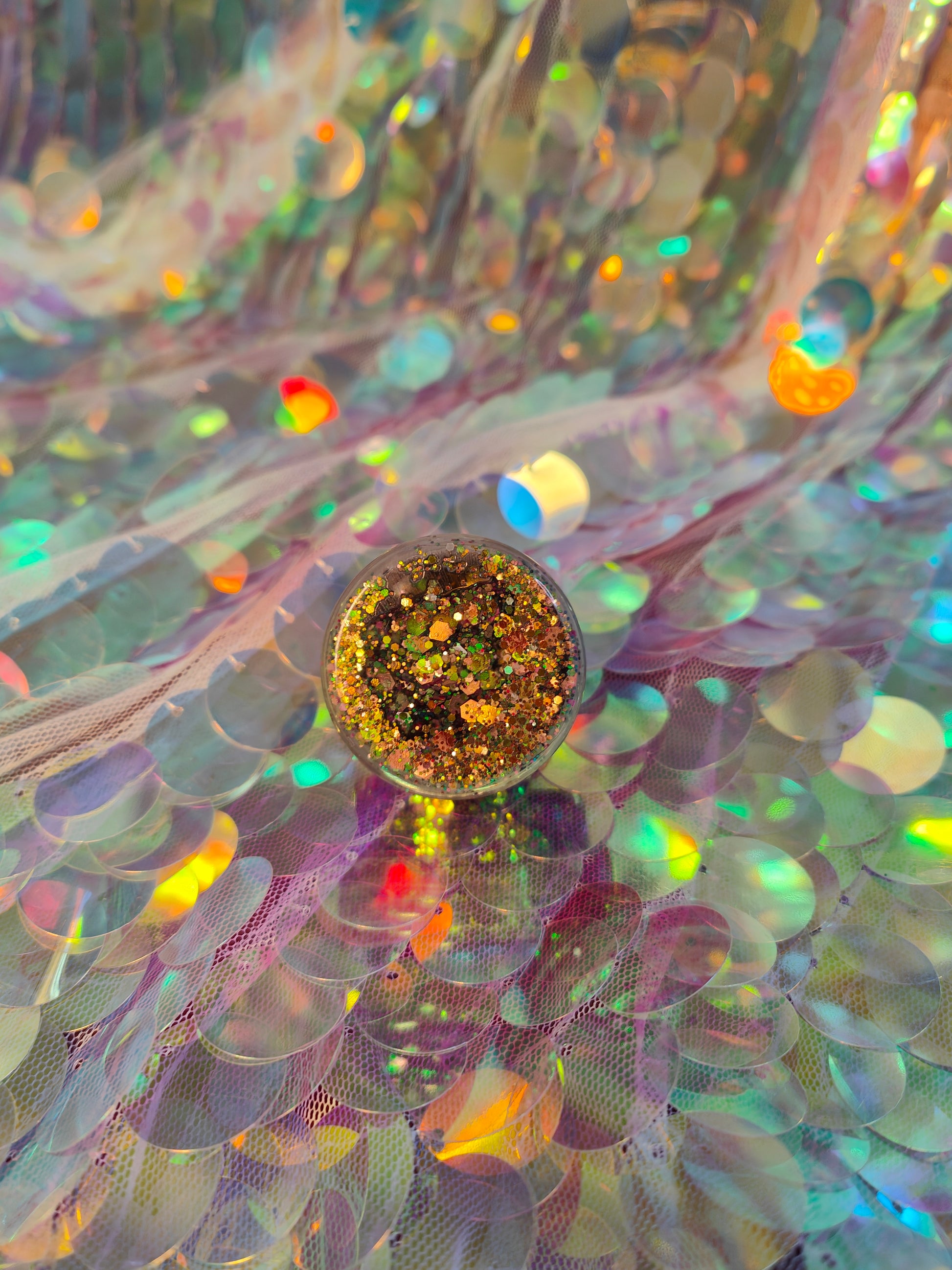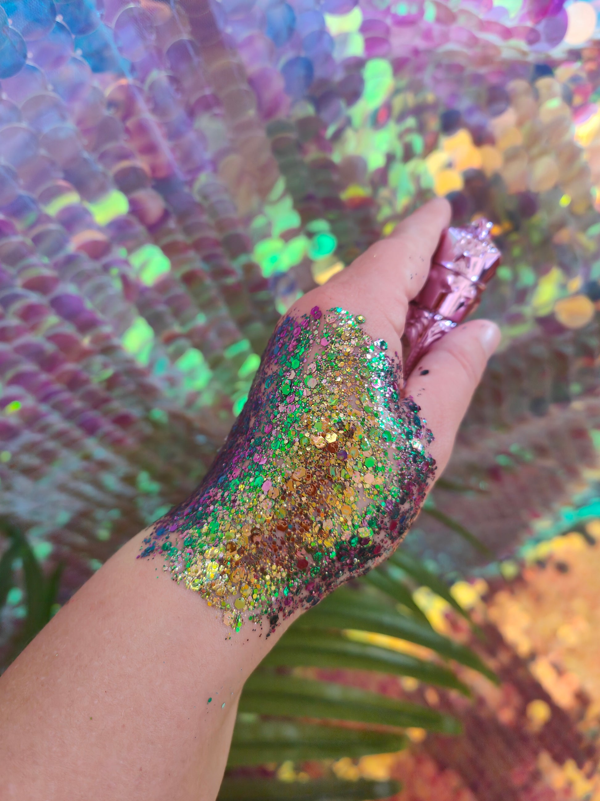 Ingredients: Chunky Cosmetic Grade Glitter, Aqua, Cellulose, Dimethicone, Acrylates Copolymer, DMDM Hydantoin.