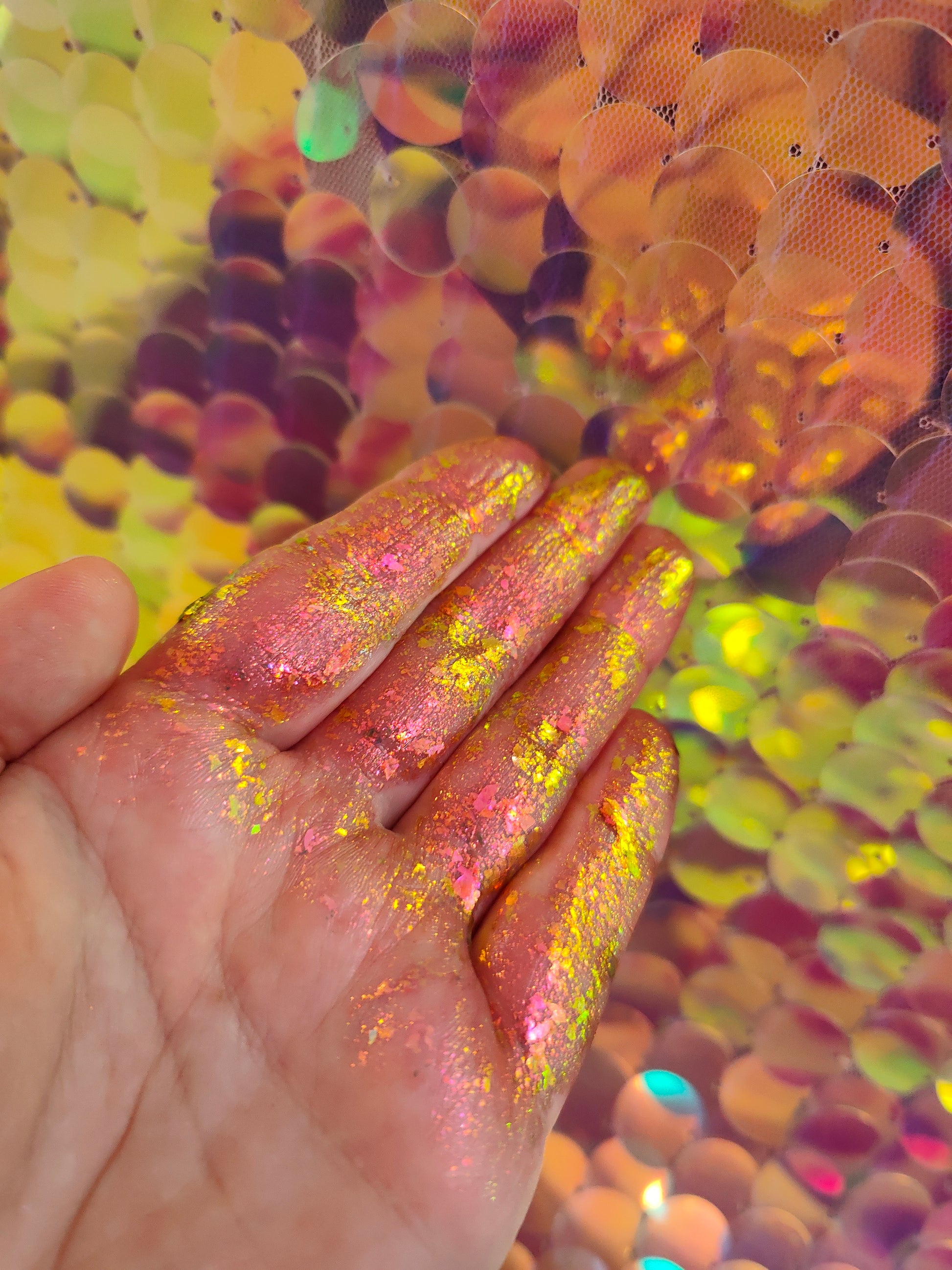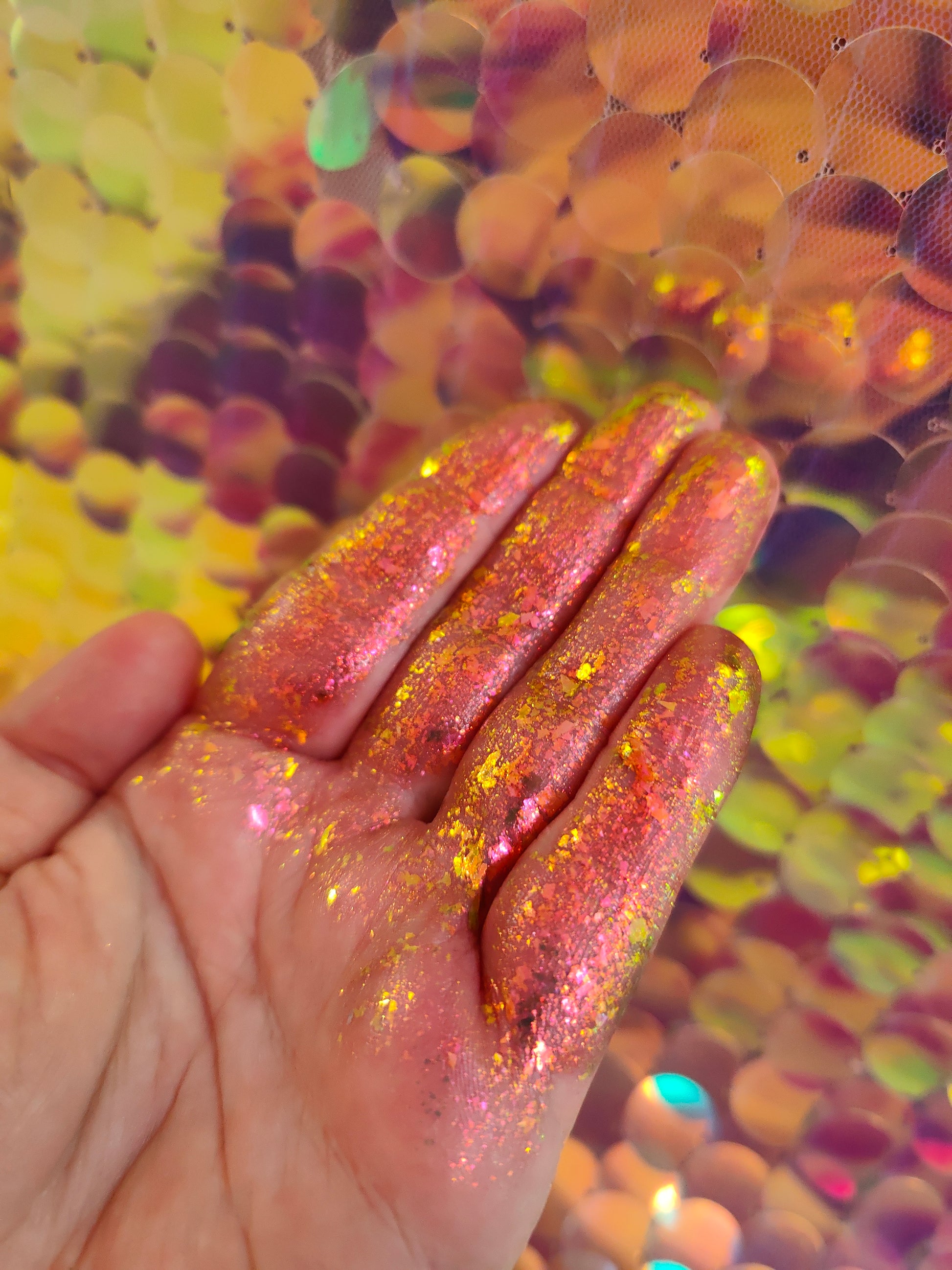 Ingredients: Chameleon Cosmetic Grade Flakes, Aqua, Cellulose, Dimethicone, Acrylates Copolymer, DMDM Hydantoin.
