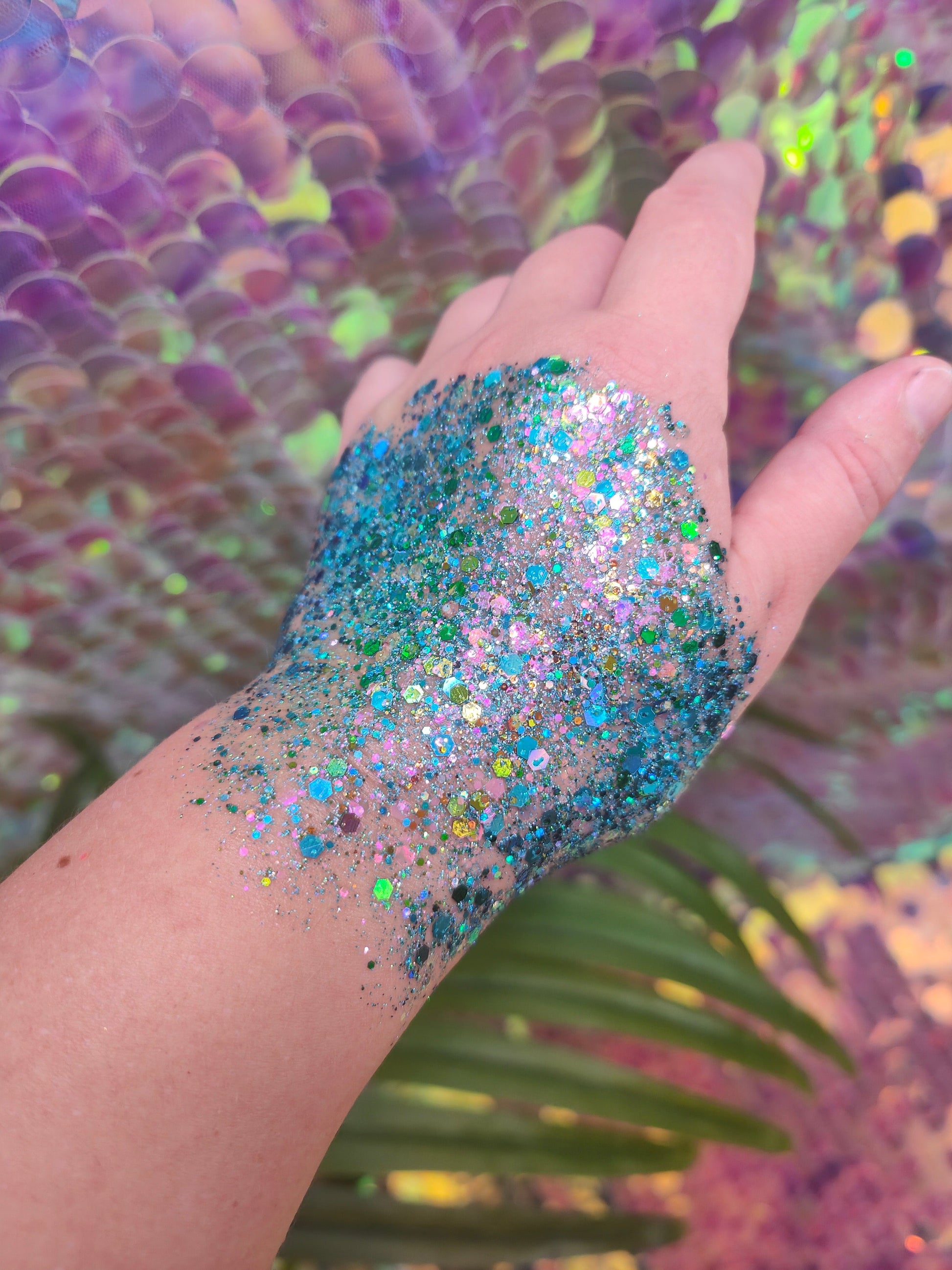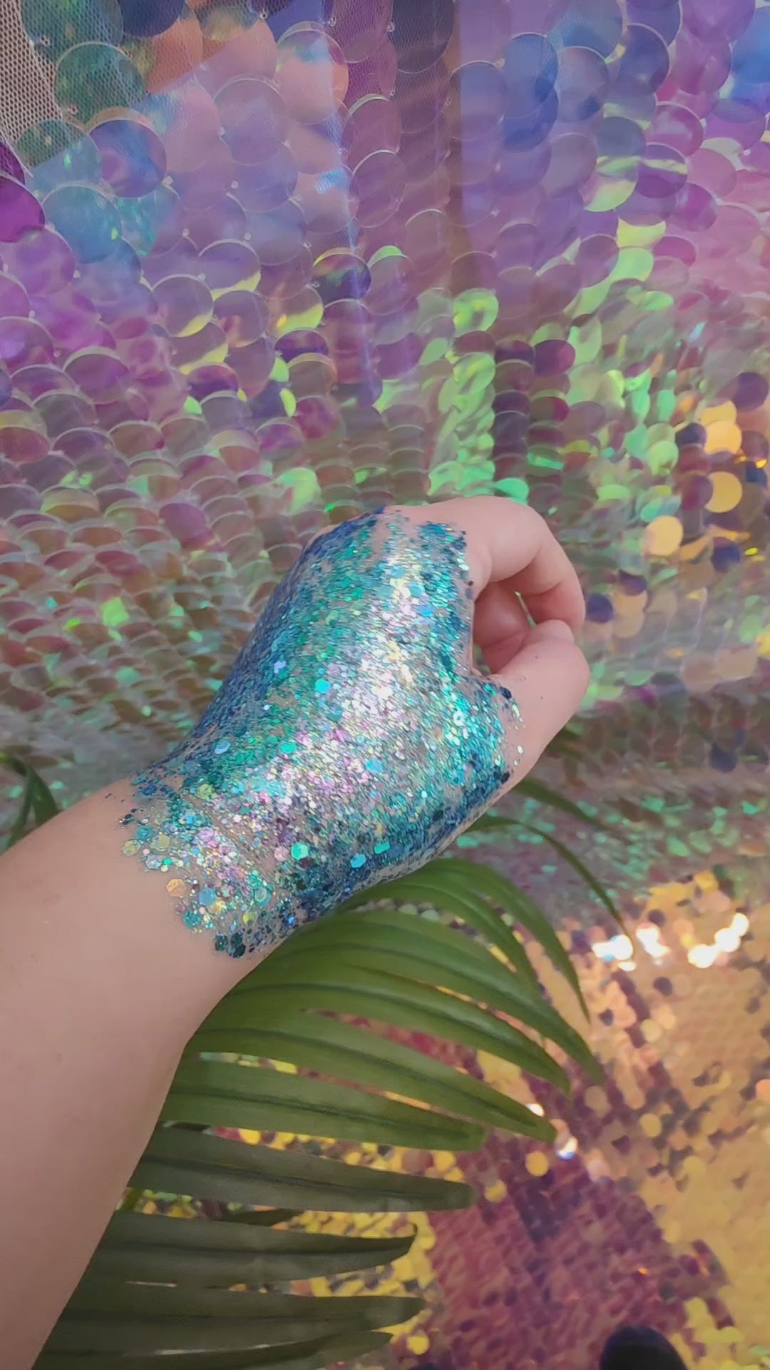 Ingredients: Chunky Cosmetic Grade Glitter, Aqua, Cellulose, Dimethicone, Acrylates Copolymer, DMDM Hydantoin.